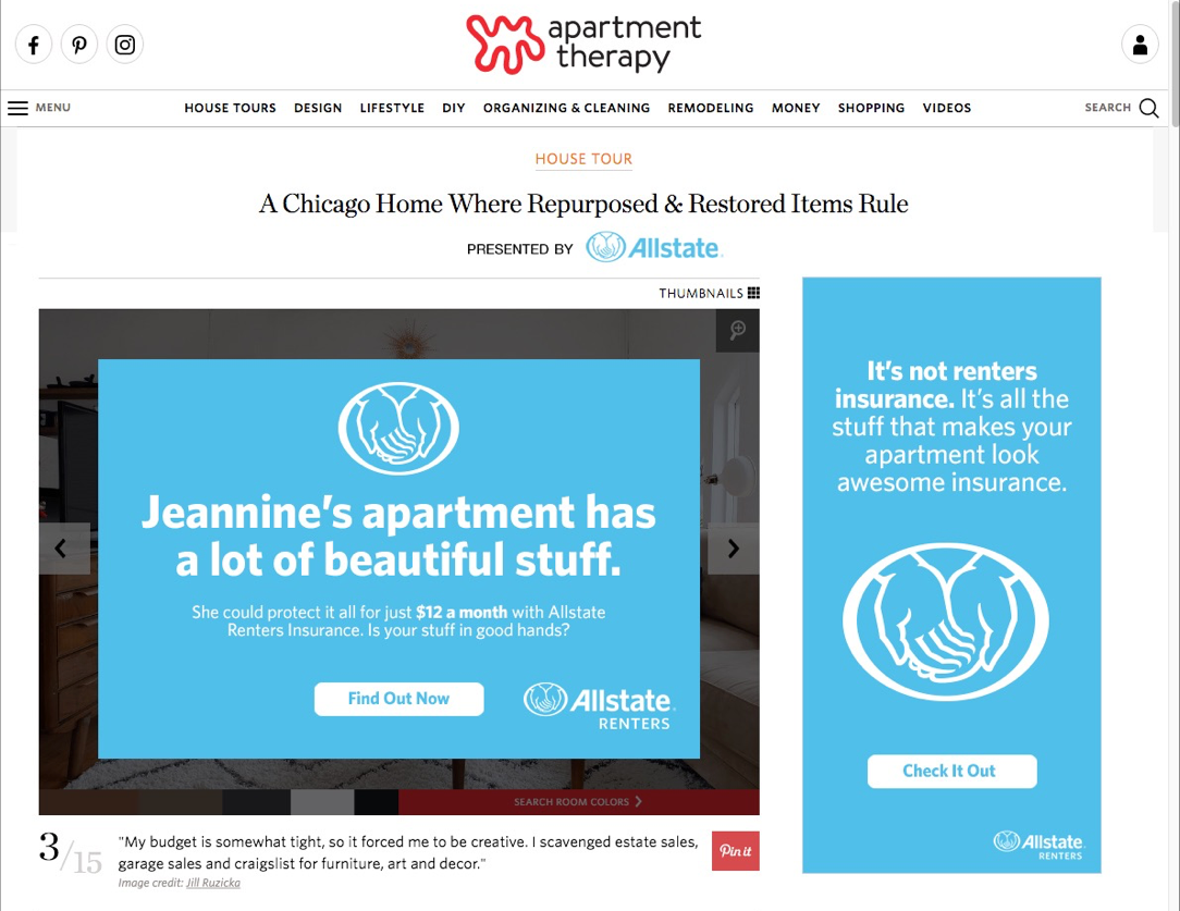 Create editorial content in key markets that profiles people on the street, letting consumers know Allstate Renters Insurance covers you inside your apartment and out.